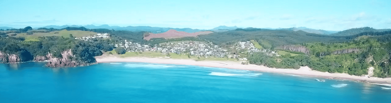 Forming the beach backdrop are masses of magnificent pohutukawa trees lining the cliff tops and clinging to the cliff face. From the centre of the beach, opportunities abound – swimming, surfing, fishing, bush and coastal walks, sports such as tennis, volleyball and petanque, a children’s playground along with the opportunity to simply just sit and enjoy the views and ambience of the majestic coastline.